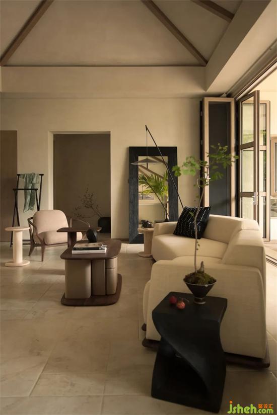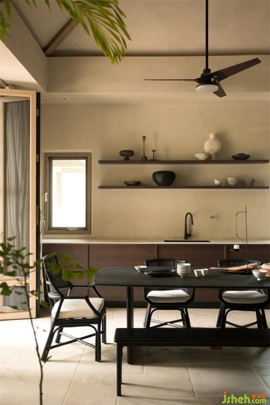 設(shè)計(jì)團(tuán)隊(duì)大刀闊斧,將全家的“動(dòng)”“樂”兩區(qū)設(shè)置在一層。推掉隔墻,去掉繁復(fù)的吊頂,將原本優(yōu)秀的層高顯露,形成通透而寬大的客廳空間,高且敞亮。別墅設(shè)計(jì)廚房在滿足常規(guī)居住8人的餐飲需求下一定得足夠?qū)挸ㄇ覍?shí)用。將入戶的廚房移動(dòng)至右側(cè)靠近院落,開窗通風(fēng),家人歸家路過之時(shí),廚房正熱鬧,菜香飄至院里,歸家之感濃烈。
