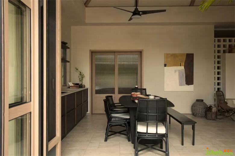 原院落雖說有可看之處,室內(nèi)卻是稍顯遜色。下疊海邊度假別墅,原本單層建筑面積僅為156平的房屋,被原精裝房各種實(shí)墻隔斷分割成了兩層,動(dòng)線及通風(fēng)極差,一層除了一個(gè)超大的臥室占據(jù)了一層大部分的空間,僅剩的空間還將廚房設(shè)置在了正大門的左側(cè),入門后若未開啟室內(nèi)空調(diào),便進(jìn)入了一個(gè)完全被阻隔的悶熱客廳,后院風(fēng)景再美也無(wú)視角欣賞。偌大臥室,被繁復(fù)的木作及上墻的木雕堵得喘不過氣。