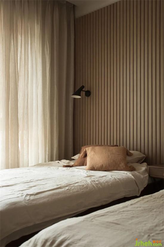 別墅設(shè)計(jì)團(tuán)隊(duì)將“眠”的區(qū)域分布設(shè)置在一層和負(fù)一層。將原本一層的單個(gè)超大臥室移至更為安靜的左院,一分為二,是佳佳為家中兩對(duì)老人準(zhǔn)備的臥室。