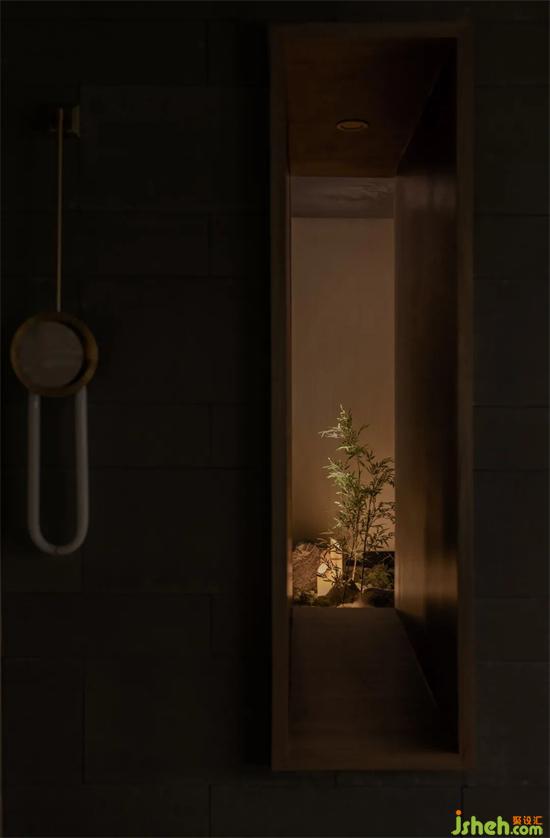 卡座和茶道空間底部及邊緣,模仿山石溝壑的形態(tài),仿佛能聽(tīng)到石縫間泉水叮咚。茶樓設(shè)計(jì)山石溝壑外透出朦朧的“喧囂“之景,是錯(cuò)離,是夢(mèng)幻。煙霧繚繞,一個(gè)不經(jīng)意,引”仙“入內(nèi),自然別有洞天。