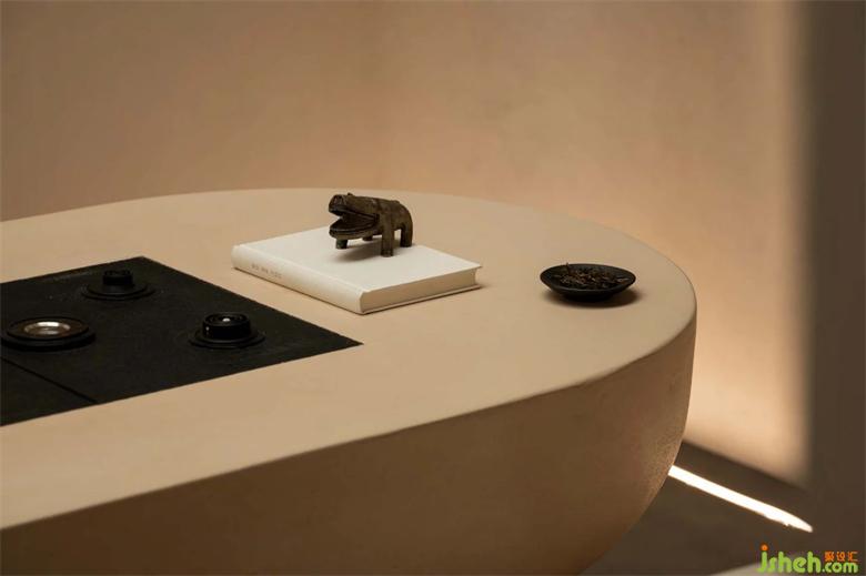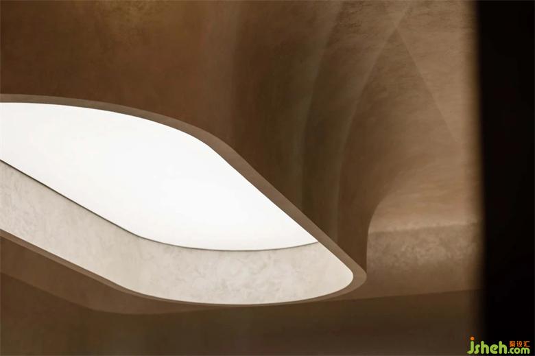 茶室前是尤勒貝特Europaint藝術(shù)涂料搭建的產(chǎn)品研發(fā)陳列區(qū),利用活石經(jīng)過高溫煅燒、分解、過濾等二十幾道工序制作而成的石灰,再進(jìn)行調(diào)和做成灰泥并與色漿碰撞,展廳設(shè)計(jì)通過精細(xì)的手法創(chuàng)作出種類繁多的藝術(shù)肌理效果,實(shí)驗(yàn)的痕跡充斥著整個空間,續(xù)寫著這里的故事。