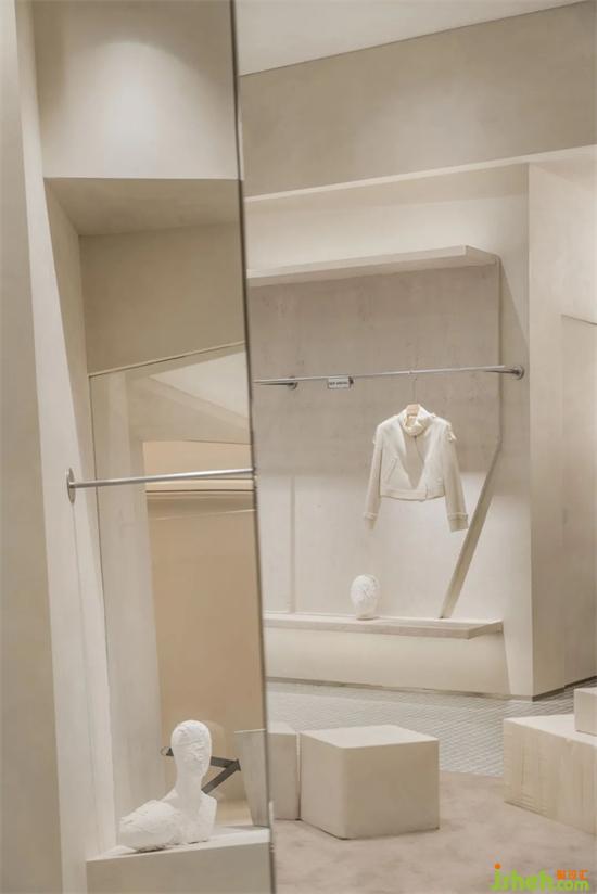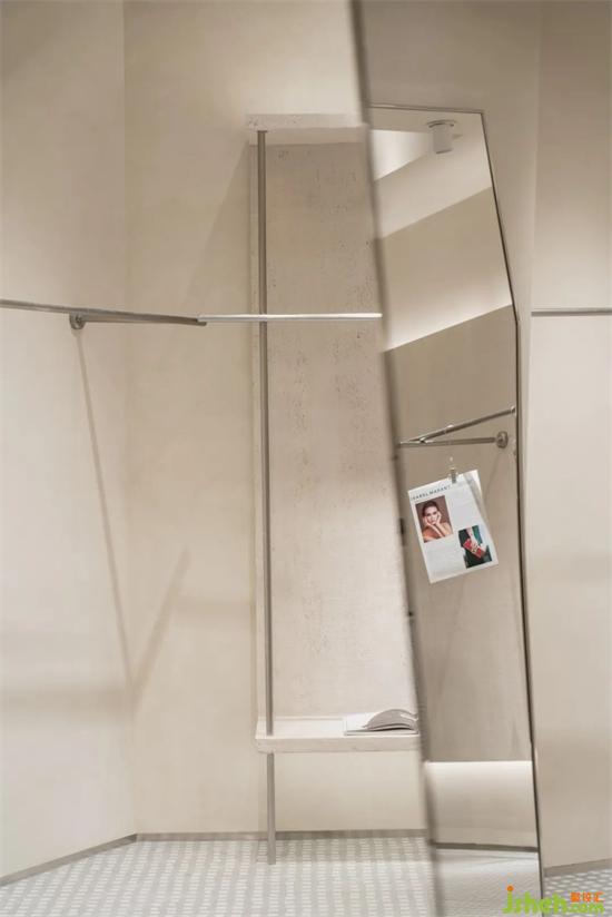 130m2的空間即使是對其做了獨(dú)特的量體裁衣,依然難以表達(dá) LEDIM WANG 其獨(dú)特與時(shí)尚的無限可能性,設(shè)計(jì)團(tuán)隊(duì)利用鏡面包裹位于中心的內(nèi)建筑體,店鋪設(shè)計(jì)模糊了人眼視覺的邊界感,鏡中映射出的虛幻世界與外界的現(xiàn)實(shí)相互融合,在有限空間內(nèi)創(chuàng)造出無限的視覺張力。