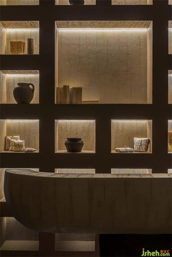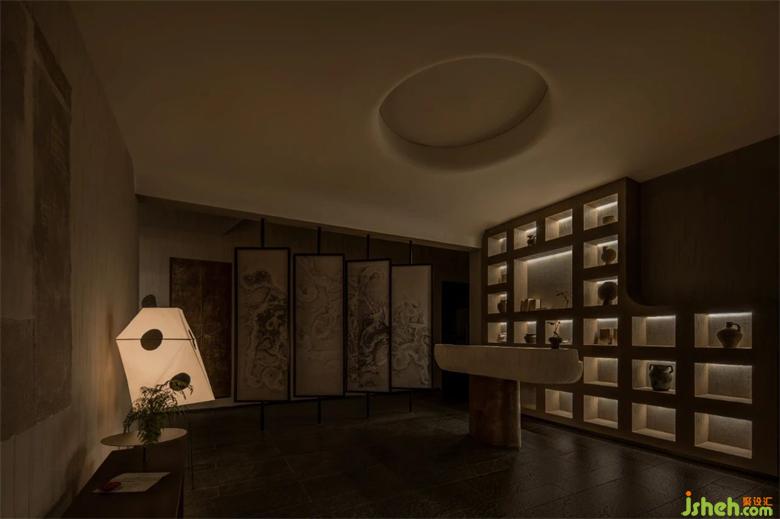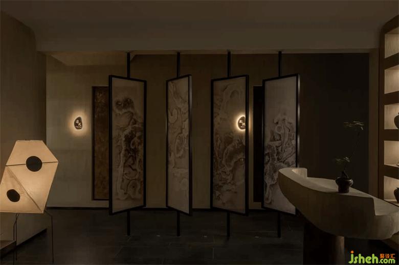 陰為“體”,陽為“?”;陰為有形之“體”,陽為?形之“?” 整體空間注?元?。將整體有形之“體”相互作?。會所設(shè)計?廳接待區(qū)不僅作為客?來訪過渡第?空間,更是整體空間集中轉(zhuǎn)換功能的區(qū)域。到達接待區(qū),客?通過活動屏?的指引,可分別被店員帶?不同的理療室。