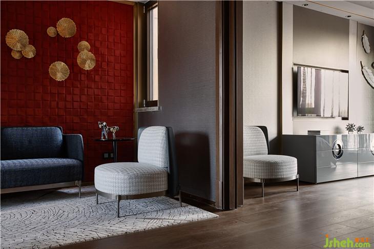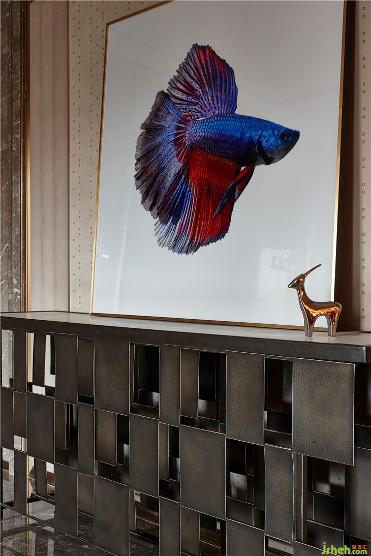 為了讓軟硬裝和諧統(tǒng)一,本案設(shè)計(jì)師李迅先生,在硬裝空間的塑造階段,非常關(guān)注造型細(xì)節(jié)的設(shè)計(jì),與后期家具調(diào)性和材質(zhì)的呼應(yīng)。精選在視覺和觸感上,與家具設(shè)計(jì)元素,銜接性強(qiáng)的珍貴木材,并創(chuàng)造性地運(yùn)用真絲、亞麻、羊絨等珍貴面料,和黃銅等貴重金屬飾條,搭配質(zhì)感晶潤的大理石、進(jìn)口磚等材質(zhì),升華空間的精致度,使軟硬裝完美融合,互相成就,將整個(gè)空間塑造成集奢華與高質(zhì)感于一體的藝術(shù)品。