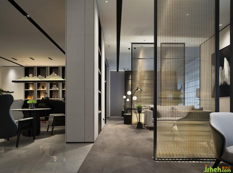鏤空的屏風(fēng)為空間增添了一絲設(shè)計感,黑色木飾面、白色石材與現(xiàn)代金屬的碰撞,彰顯低奢雅致的韻味。