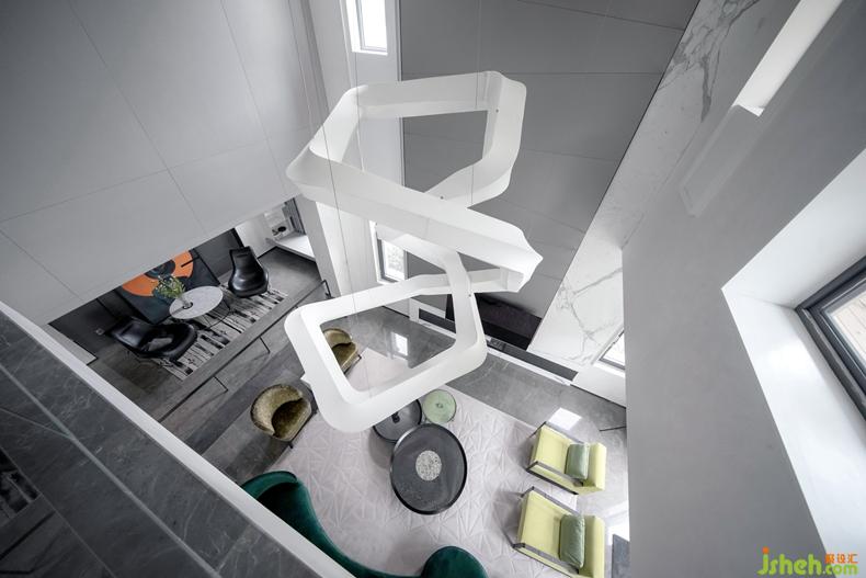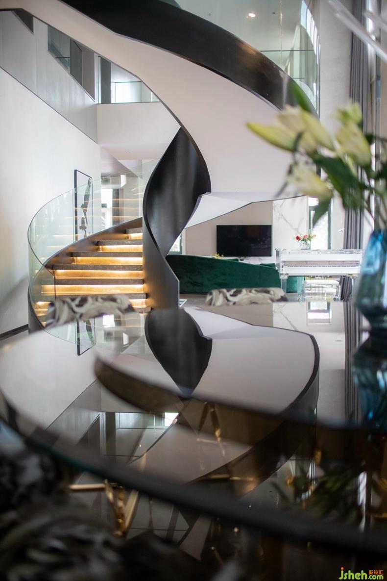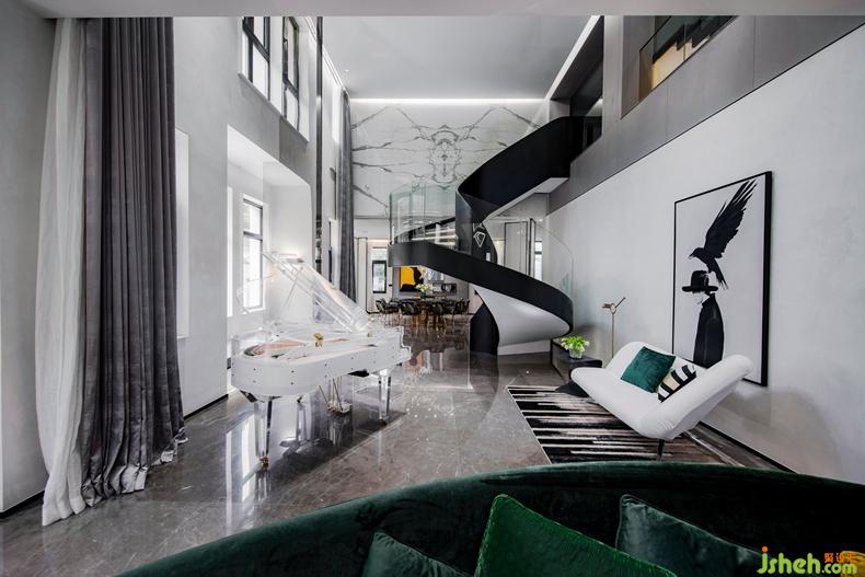 家具選用意大利知名品牌,非常講究品質(zhì),同時(shí)凸顯個(gè)性獨(dú)特與眾不同,并以流線形為主來表現(xiàn)女性的優(yōu)雅。那一架透明的鋼琴造型乖巧優(yōu)美,透明的質(zhì)地和應(yīng)著白色大理石的花紋質(zhì)感以及圓形樓梯的力量感,妥當(dāng)?shù)卮嬖谟诳臻g一隅。別墅裝飾精心選擇的掛畫恰如其分地豐滿著空間有些高冷的表情。