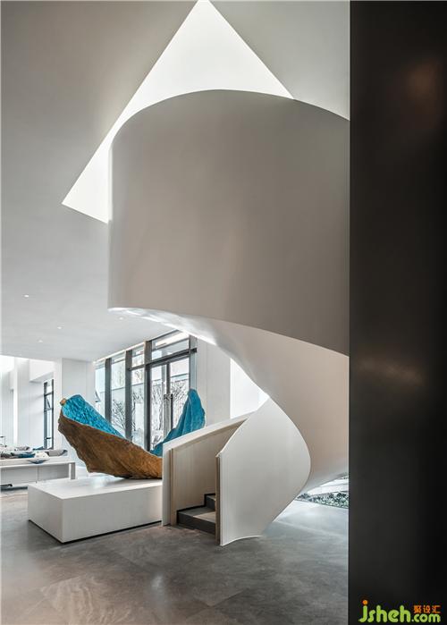 旋轉(zhuǎn)樓梯與藝術(shù)裝置是舞動的“精靈”,造型和線條展現(xiàn)力量與靈動。藝術(shù)品為空間的空白填補想象,在具象與抽象之間,傳遞價值。