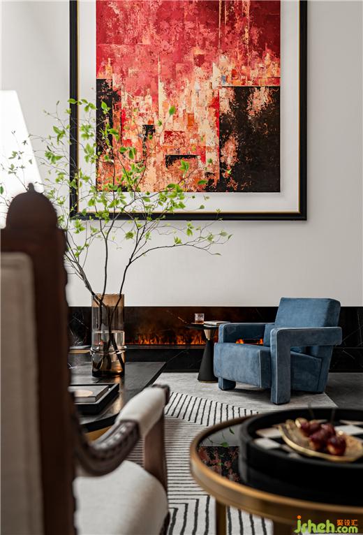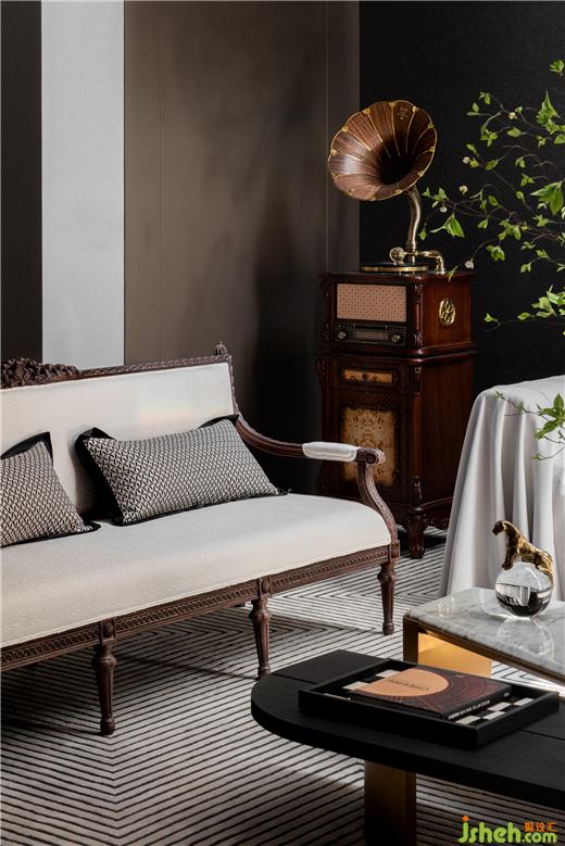 壁爐中的紅色火焰烘托氣氛,一臺(tái)古典優(yōu)雅的留聲機(jī)是懷舊情結(jié)的復(fù)刻影印的,別墅設(shè)計(jì)讓復(fù)古氣韻和時(shí)尚感得以美妙交融。讓人感到一絲浪漫和迷醉,撩撥著人的心弦。