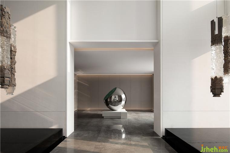 在過(guò)廳中,傳統(tǒng)的手工藝以現(xiàn)代化的新材料創(chuàng)意組合,營(yíng)銷(xiāo)中心設(shè)計(jì)將磚雕的精工技藝與鉑晶材料結(jié)合,呈現(xiàn)了一組彰顯地域歷史特色和現(xiàn)代藝術(shù)之美的藝術(shù)裝置。