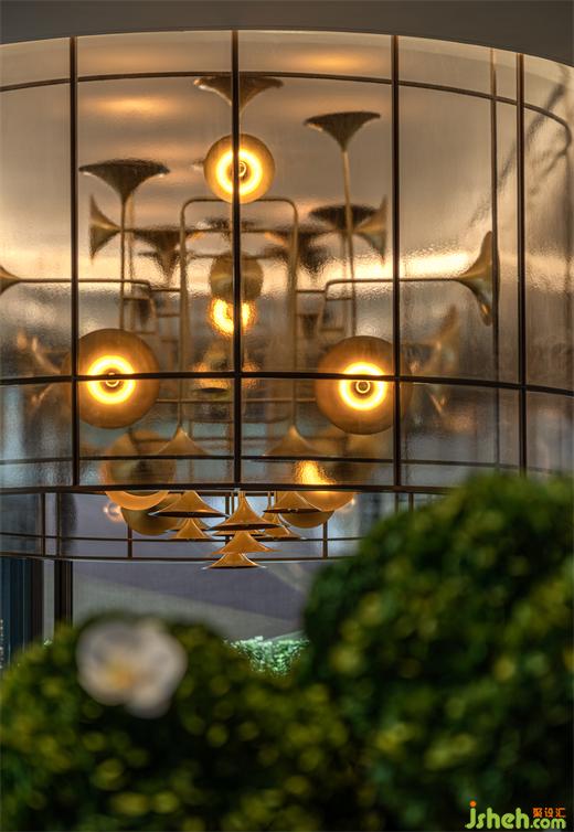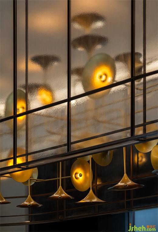 水吧區(qū)主燈——“時代之聲”,靈感源于曾經(jīng)風(fēng)靡上海的留聲機(jī),是海派音樂的重要代表,當(dāng)時城市高端消費(fèi)群體的一個象征,極有時代的印記。