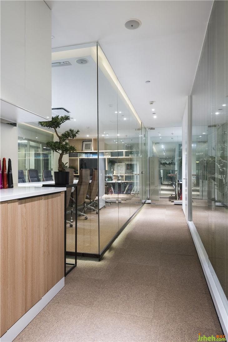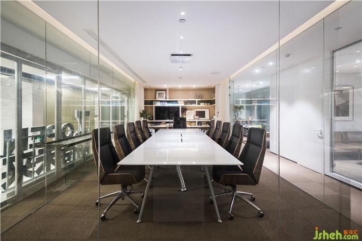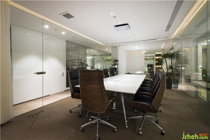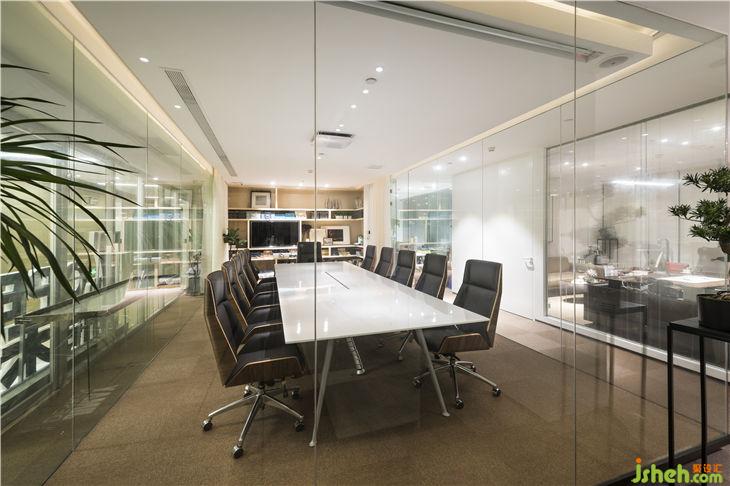 會議室以玻璃盒子為設(shè)計想法,運用二次空間的形式,清楚地展示了空間里人與人之間的互動。