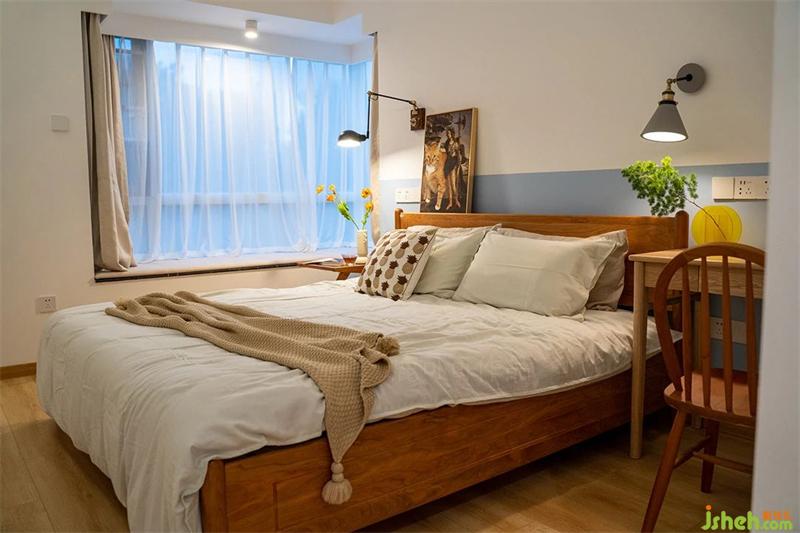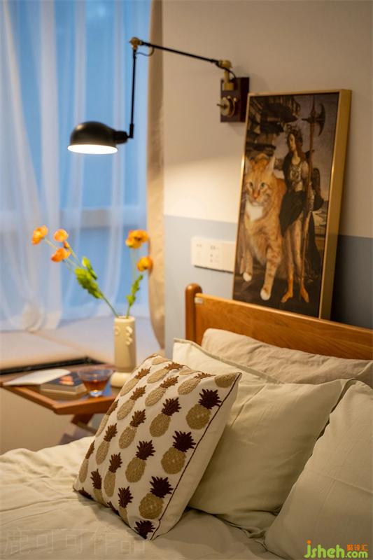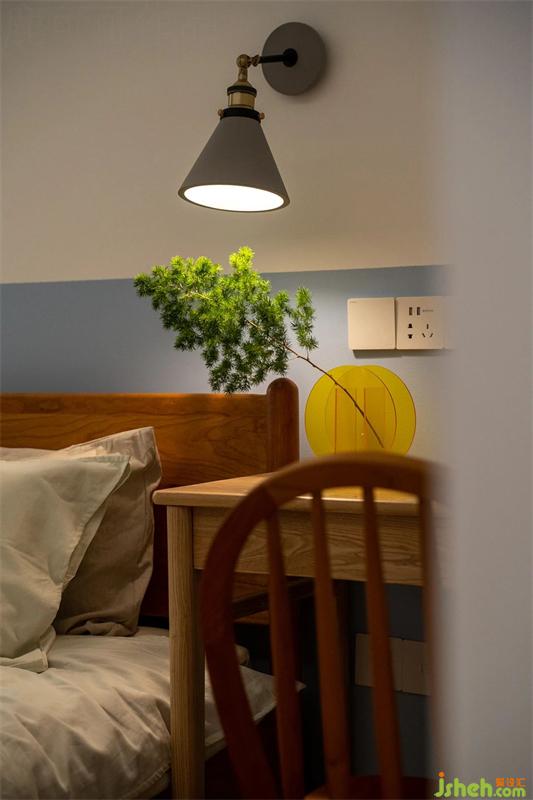 主臥是無主燈設(shè)計(jì),床頭兩邊都留了壁燈,休息的二人各自掌控著入睡前的燈光。