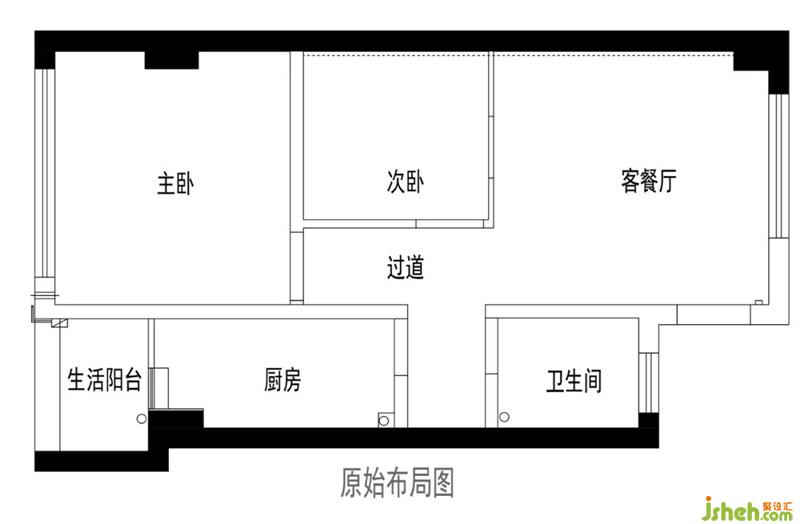 原戶型的過道狹長,對于原本就不大的空間來說是比較浪費的,重新布局后把原次臥房改到了原廚房,釋放出更多的空間給客廳,改造后客廳既寬敞又通透。