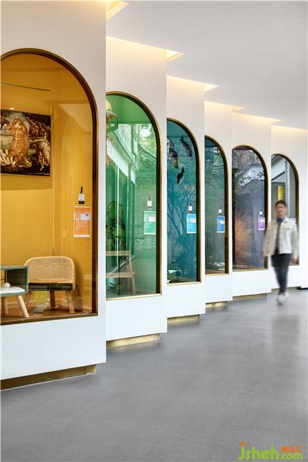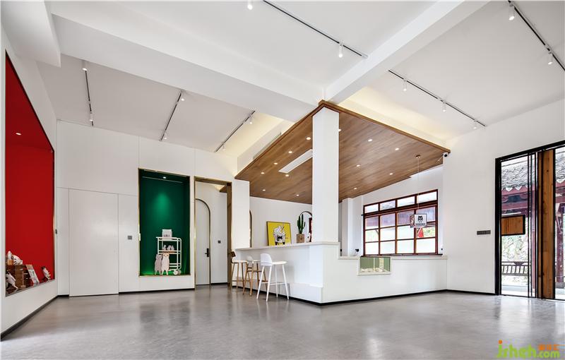 空間沿用原民國中式院落的建筑格局基礎(chǔ)上合理利用,劃分成王家大院(入戶花園),貓公寓,醫(yī)務(wù)室,貓郵局,貓數(shù)屋,茶水吧,海外北堂,大教室,茶室,創(chuàng)客空間,烘焙教室等空間。充分運用“空間情緒設(shè)計”理論,通過空間層次與色彩、陽光的相互輝映,改善我們與周圍一切事與物的關(guān)系。地臺與地面形成自然空間隔離,滿足功能性的同時做到空間的延展。二層空間有較高的斜面頂我們利用這個層高做了玻璃棧道天橋讓空間有更多的層次與自由。文創(chuàng)設(shè)計