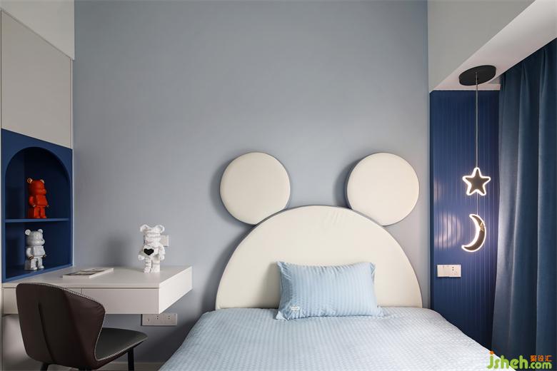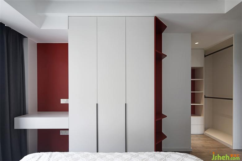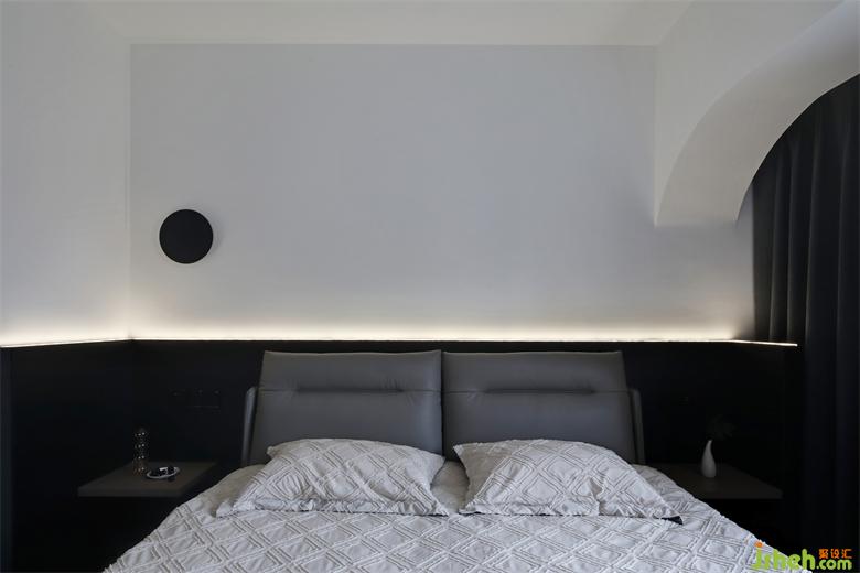 In the bedroom, the design of the bedside wall, white and black occupy half of the wall, neutralize each other's colors, and make the space in the most balanced state.