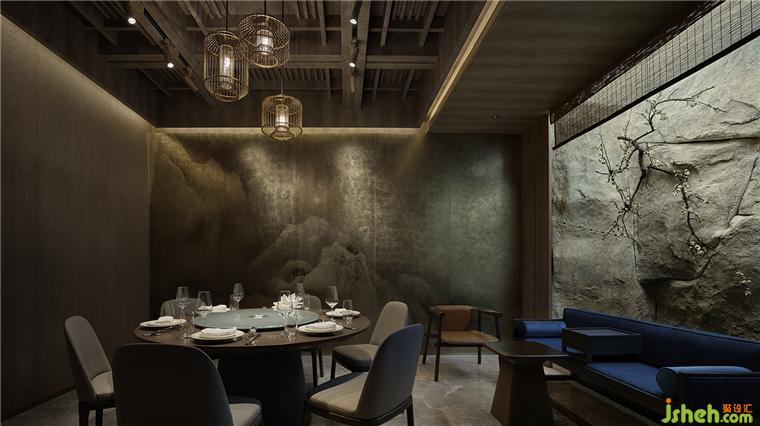 相似的自然感營造在各個包房也有鮮明的體現(xiàn),山石自然、不拘手法和介質(zhì),消弭了寫字樓堅硬的都市感。