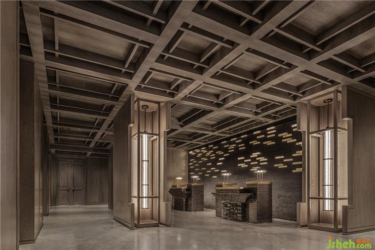 首先,因為餐廳60%左右的經(jīng)營面積位于傳統(tǒng)概念中的B2層。在設(shè)計解決中,我們在中庭做了一個下沉廣場直接通到B2層,龍庭酒家設(shè)計在這樣情況下B2層很房間是沒有自然采光的,怎么讓客人在就餐時能夠忽略這個位置問題,這是第一個難點。