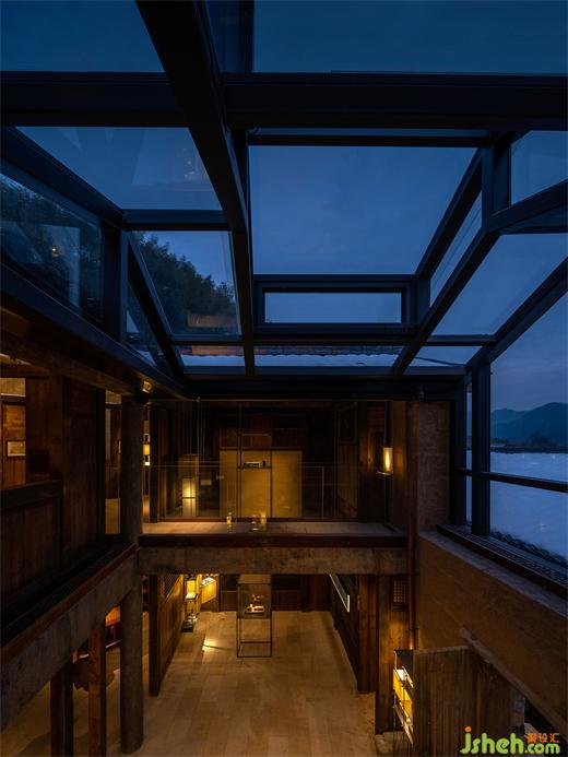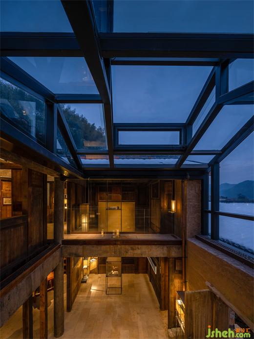 羅振華與周周商量用空間來打造一個公共空間去展示村民的生產(chǎn)與生活的場景:博物館設(shè)計在混凝土結(jié)構(gòu)基礎(chǔ)上置入靈活的輕型鋼結(jié)構(gòu)并與木構(gòu)形式相一致,在大堂中實現(xiàn)了“天光中庭”。