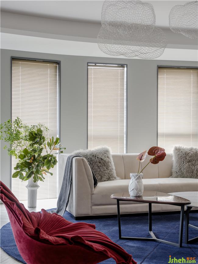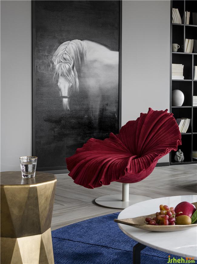 這款醒目的酒紅色BloomChair是設(shè)計(jì)師Kenneth Cobonpue的作品,美麗的外形像一朵綻放的鮮花,白馬壁畫讓墻面生動(dòng)有趣,它用栩栩如生的美賦予空間以生命力,圓形藍(lán)色地毯含蓄、優(yōu)雅又耐看,它以靜默的姿態(tài),成為家的一部分。