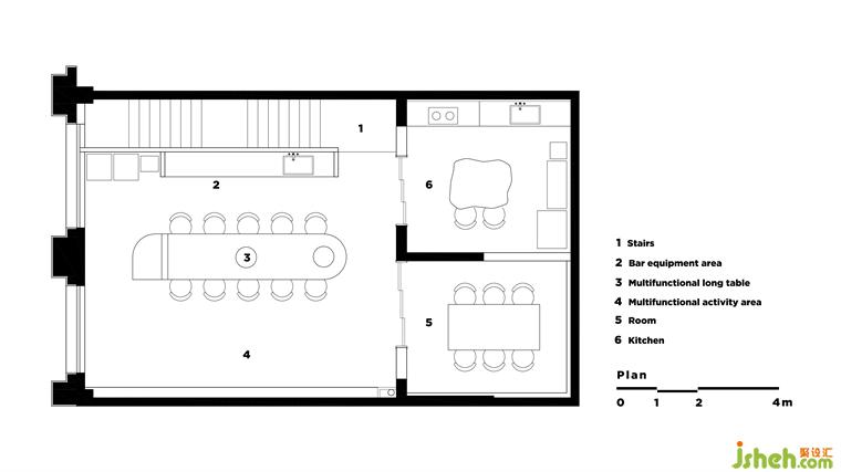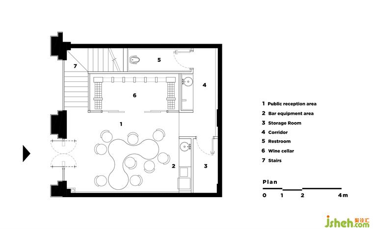 出于方便酒類搬運(yùn)、存儲(chǔ)和展示的需求,酒莊設(shè)計(jì)團(tuán)隊(duì)將場(chǎng)地中重要的恒溫酒室、倉(cāng)庫(kù)和品鑒吧臺(tái)都放在了一層,這樣對(duì)于進(jìn)店的客戶可以形成方便的操作和展示動(dòng)線。由于需要少量的酒類配餐和小型活動(dòng)的餐飲功能,二層特別設(shè)置了一間廚房,方便制作和互動(dòng)。二層的長(zhǎng)桌區(qū)不僅可以作為招待小型餐飲品酒的區(qū)域,更可以搭配投影幕布,作為一個(gè)商務(wù)會(huì)議場(chǎng)所使用。