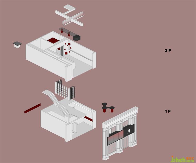 The original indoor space is divided into upper and lower floors. The upper floor is larger in size. However, due to the low height of the building’s fire pipes, which puts forward higher requirements for the upper floors ceiling. Meanwhile, the building stairs connecting the first and second floors exists safety problem that are too narrow, too high, and too steep. It also required the redesign.