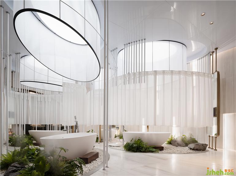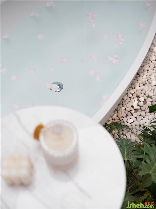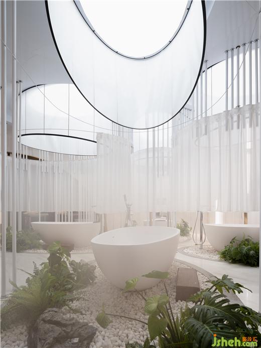 女賓區(qū)的桶浴部分是驚艷人心所在,水療設(shè)計(jì)純白的簾幕光罩與浴缸一起,拼成盛開的花朵模樣,不動(dòng)聲色卻綻放著獨(dú)屬女性的柔美。