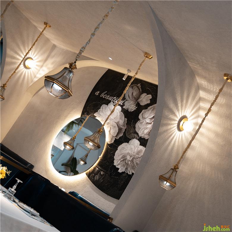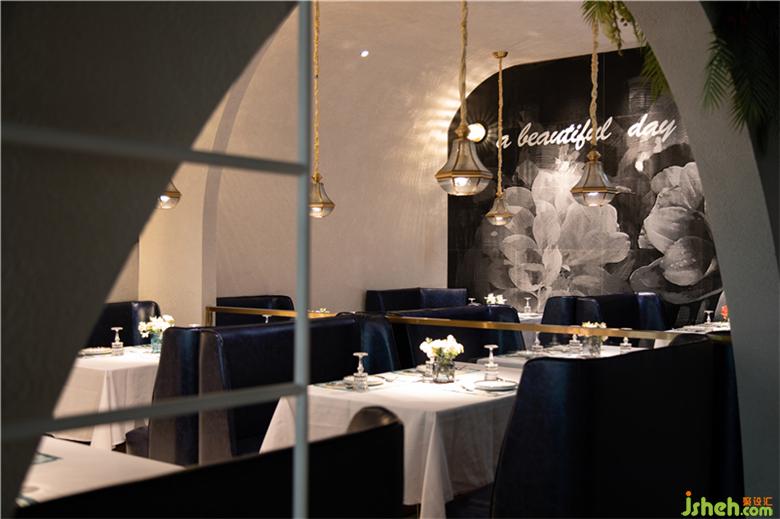 餐廳設(shè)計的天花借助于鏡面不銹鋼,形成富有沖擊力和戲劇性的視覺效果。搭配現(xiàn)代歐式畫藝,極盡簡約之美。柔軟的布幔裝置的巧妙介入和運(yùn)用,打造豐富的空間層次感與曲線美,結(jié)合復(fù)古吊燈氤氳出的柔和燈光,為整個空間渲染出了一種濃厚的歐式風(fēng)情,讓喧囂城市背后,更有寧靜感與儀式感,體現(xiàn)出自然浪漫的品牌格調(diào)。