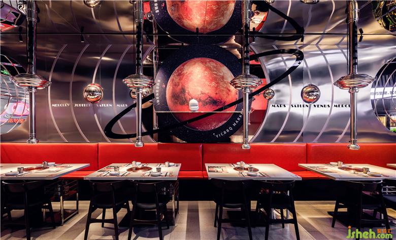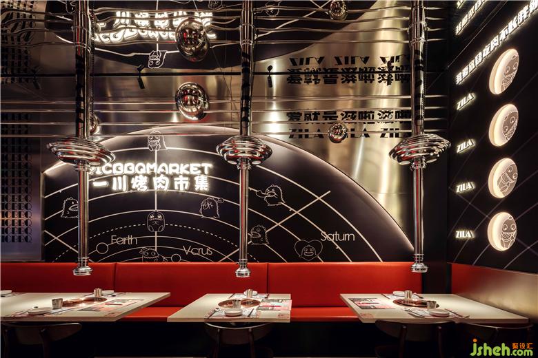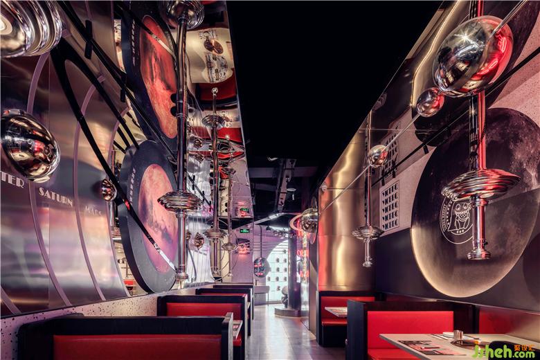 整體的未來感的結(jié)構(gòu)餐廳設(shè)計,讓食客仿佛置身神秘滋拉星球,營造出一種回到未來的既視感。