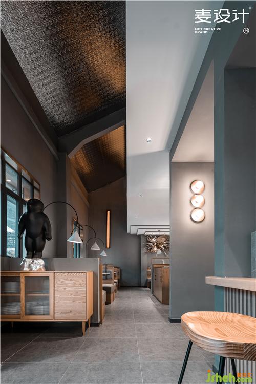 Aesthetics is not only a string of symbols and a set of furniture in the room, but also a pursuit of people’s soul. Based on the deep understanding of urban culture, Mai design explores the spiritual vitality under the collision and fusion of design and life, design and art, and brings a unique creative scene. In terms of the overall style, the design of Huofuxiaoluohao restaurant is decorated with the elements of industrial style, discards the rough heavy metal feeling and cold tone, retains some of the original material texture of the building, and combines with the application of green plant and decorations which can soften the metal feeling, so as to dispel the sense of constraint in the simple spatial structure, presenting the artistic beauty of atmosphere and delicacy.