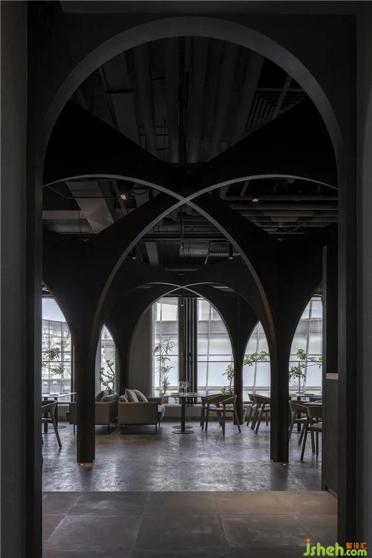 利用拱的框架來取景,創(chuàng)造空間的幾何對稱北京酒吧餐廳設(shè)計(jì)。