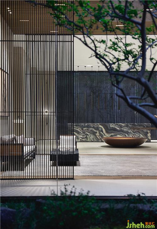 茶室隔窗輝光,空靈清妙。其內(nèi)長桌后,是扇朦朧隔光玻璃軒窗,使得庭院花葉隔簾生輝。握杯靜坐,俗念消融在那如月如鶴翼的淡白輝光里,物我兩忘。