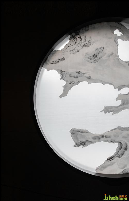 借著影壁一輪熠熠圓月,月中透著景入溪山,伴著濤聲,暈染出杭州的朦朧詩(shī)意空間。