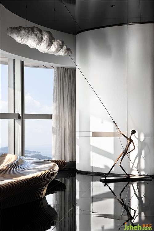 作為空間的過(guò)渡,漫思設(shè)計(jì)希望借由藝術(shù)雕塑的點(diǎn)綴,給室內(nèi)注入漫步云端的精神內(nèi)核,營(yíng)造藝術(shù)與自然共融的靈妙意境。
