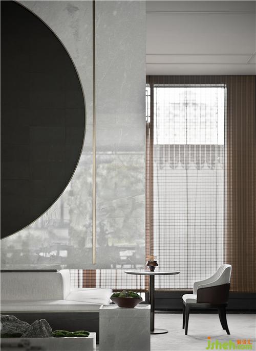 漫思MANS以格柵和“木”元素的“古”作為東方謙遜的美學(xué)語言,將東方謙和高雅的精神風(fēng)貌納入空間當(dāng)中,手法上去繁化簡(jiǎn),干凈的線條使得整個(gè)空間呈現(xiàn)“禮”的秩序感,從而凸顯東方形制的秩序與挺拔的視覺感。