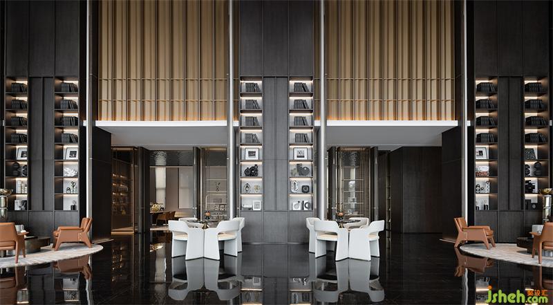 水光瀲滟,深蘊(yùn)著細(xì)膩的感性脈絡(luò)。步入前廳,悉見空間延綿的藝術(shù)情懷,一場張弛有序的空間敘事由進(jìn)入儀式感的場域開始,以現(xiàn)代主義美學(xué)及精尚的質(zhì)感,定制出屬于這個空間的設(shè)計(jì)語言。
