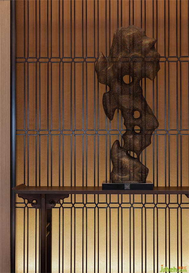 古銅金屬網(wǎng)眼的太湖石藝術(shù)裝置,營銷中心設(shè)計(jì)凝聚著清俊靈動的東方神韻。人在其中,心緒樸素而無瑣屑。