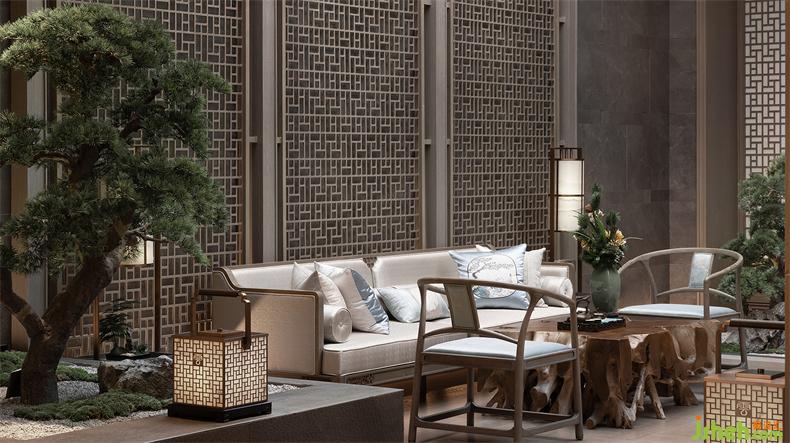 節(jié)奏與韻律可以激發(fā)起人們的美感聯(lián)想,步入光影長(zhǎng)廊呈現(xiàn)的是圓潤(rùn)如月的月洞門(mén),暗含九九歸一寓意圓滿之意,會(huì)所設(shè)計(jì)以虛實(shí)結(jié)合的手法,材質(zhì)與光影的動(dòng)態(tài)產(chǎn)生交互,在月洞門(mén)下構(gòu)成“框景”,凝結(jié)出一副“明月松間照,清泉石上流”的豐盈畫(huà)面。