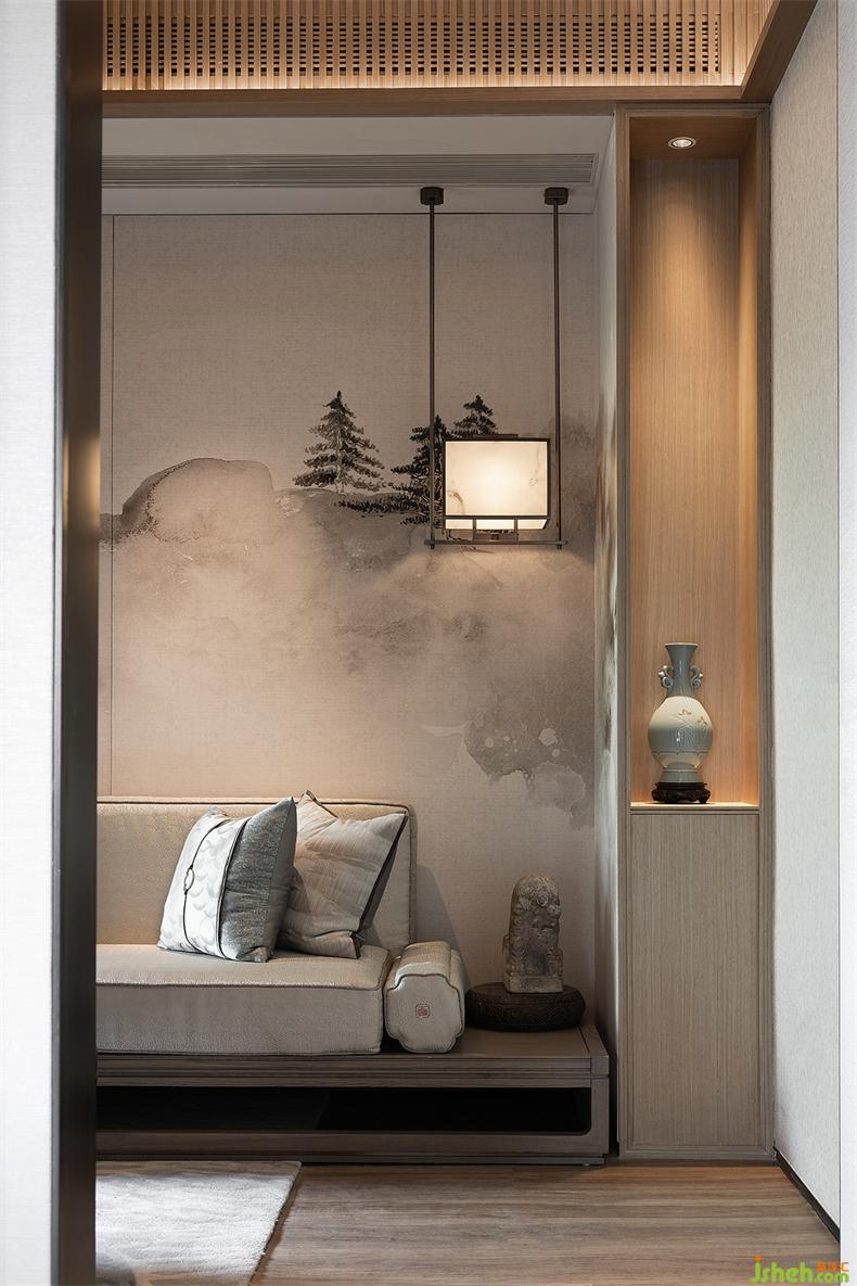 天花吊飾自然,樸實(shí),色彩深沉,具有東方雅韻。燈光的變化燈光給空間增加了平靜私密,室內(nèi)設(shè)計(jì)師打造一個全然放松身心的場所。裝置采用宣紙質(zhì)感的材質(zhì),提取云海作為元素,結(jié)合川蜀山巒依附其中,陳設(shè)置景,簡凝詩意。