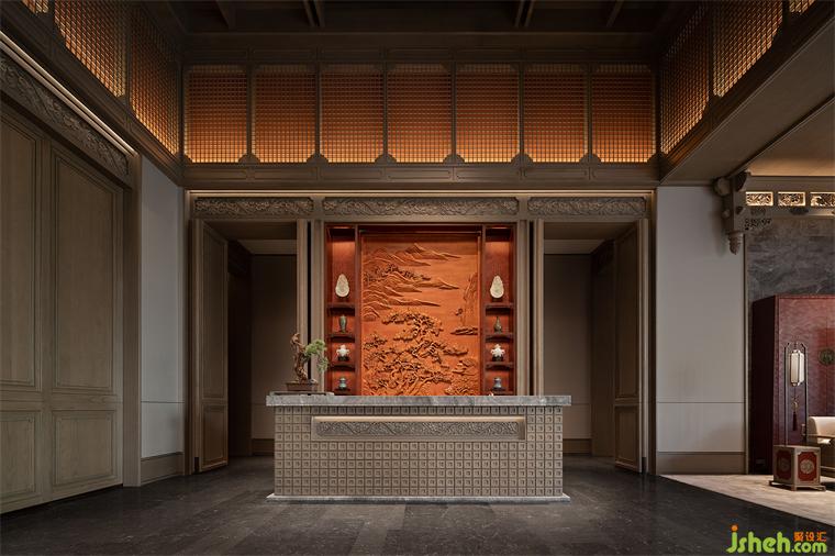 長(zhǎng)沙會(huì)所設(shè)計(jì)以禮相待是東方的傳統(tǒng)。一進(jìn)門(mén)為禮,迎賓初日,萬(wàn)千威儀。步入大堂以東陽(yáng)實(shí)木雕刻的《沁園春.長(zhǎng)沙》擔(dān)起序章,將“看萬(wàn)山紅遍,層林盡染;漫江碧透,百舸爭(zhēng)流”融入其中,詮釋人文·自然·東方的美學(xué)意境。門(mén)廳承襲中式府邸的傳統(tǒng)對(duì)稱性布局,再現(xiàn)威儀大氣的禮序空間。人字形天花以徽派傳統(tǒng)建筑結(jié)構(gòu)為原型,傳承千年建筑儀范,恢弘成勢(shì),更賦予了空間雍容端莊的氣質(zhì)。