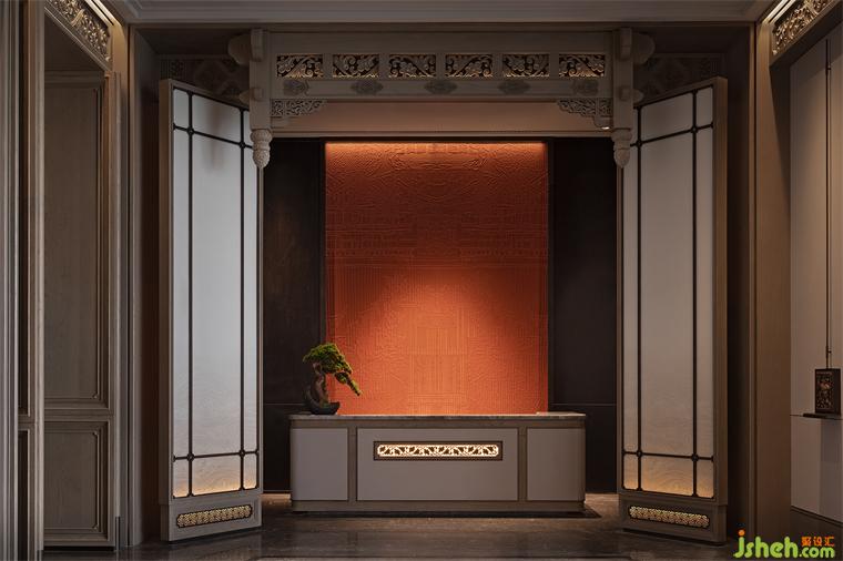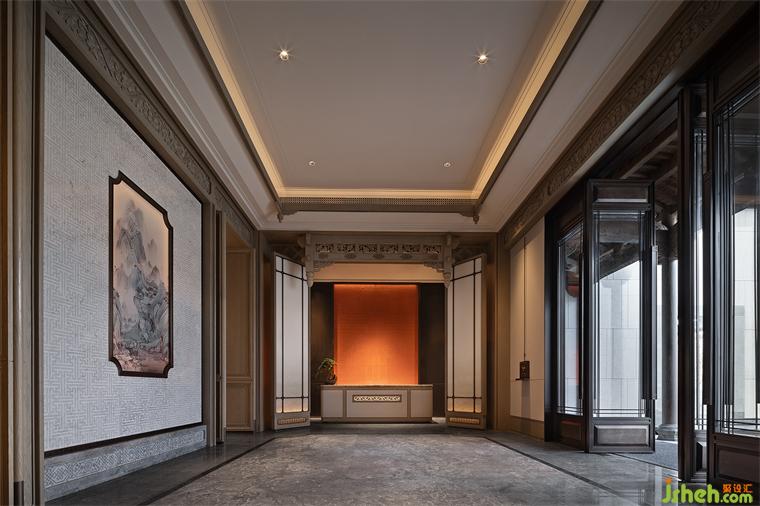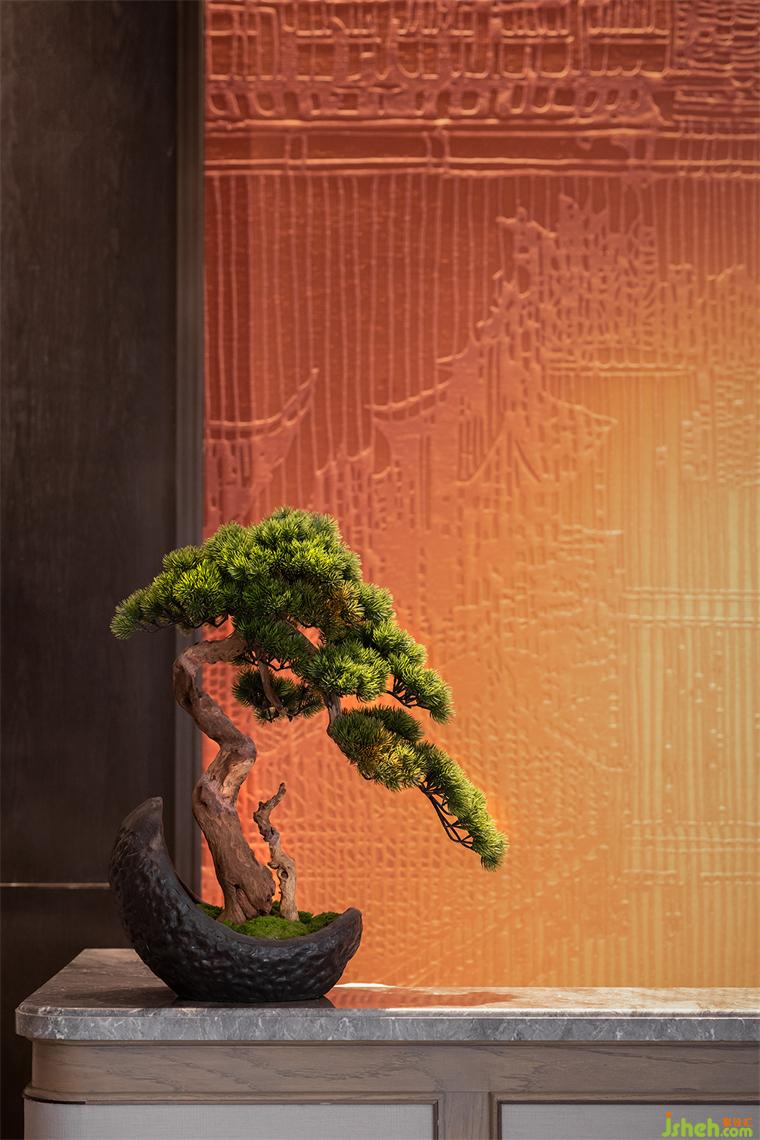 節(jié)奏與韻律可以激發(fā)起人們的美感聯(lián)想,步入光影長廊材質(zhì)與光影的動態(tài)產(chǎn)生交互,長廊中的地磚由中國傳統(tǒng)燕尾鎖落得到靈感和啟發(fā),整體空間隱含了徽派建筑的結(jié)構(gòu)布局。兩側(cè)引水景穿插,長沙會所設(shè)計中式方形燈籠飾于長廊之內(nèi),一道云紋的石橋序列其中。整體以含蓄的現(xiàn)代方式詮釋東方意境,陳設(shè)置景,簡凝詩意。