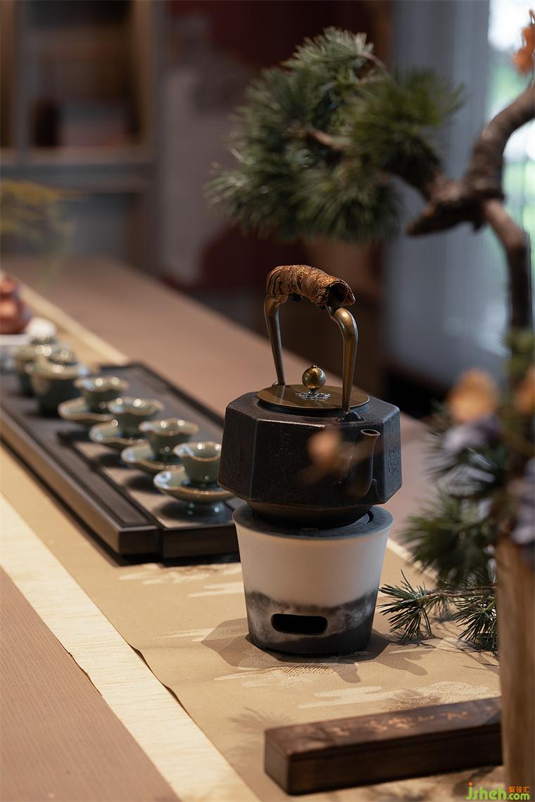 洽談區(qū)的設(shè)計延續(xù)了空間的禮序之美,搭配宋式家具,長沙會所設(shè)計營造家的真實感受和舒適商談氛圍,光影交錯下,一抹中國紅的柜體,作為跳躍色點燃空間情緒,傳達著當(dāng)代中式美學(xué)的奢華。