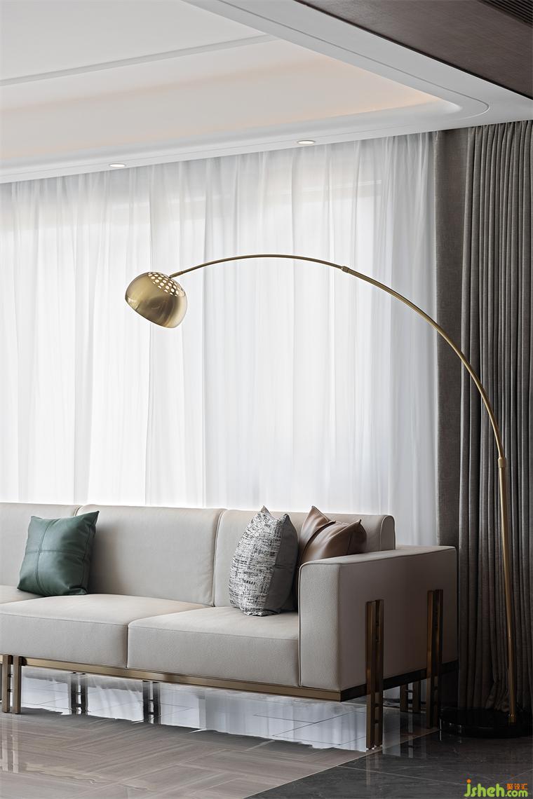 客廳布局打破常規(guī)的空間界限,樣板房設計強調(diào)空間線條感與生活功能性的思考,客廳、餐廳與工作區(qū)融合實現(xiàn)多場景對話打造生活空間,以連貫的手法和語言造型呈現(xiàn),向內(nèi)外延伸。開放式的格局,讓空間更為寬敞通透,營造舒展的氛圍。