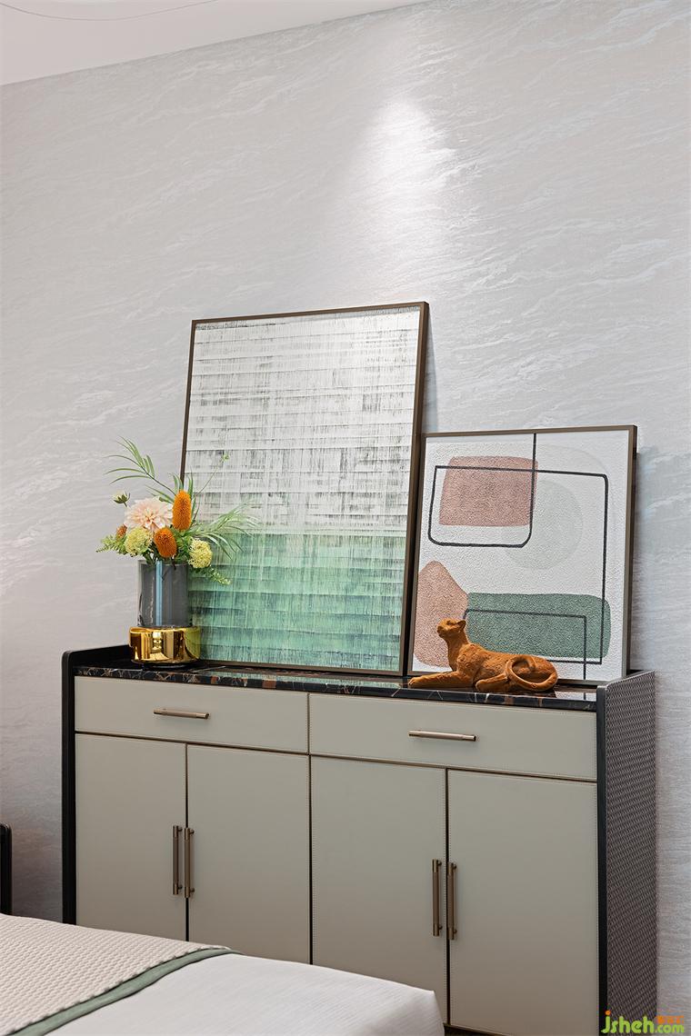 次臥靜謐舒適,優(yōu)雅的暖色調(diào),舒適的材質(zhì),自然的柔和光線,樣板房設(shè)計簡約的線條增加了空間視覺層次,同時豐富整體空間的現(xiàn)代意象。