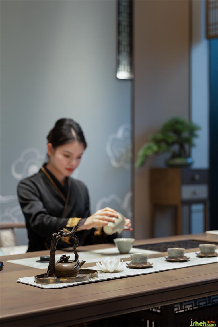 從時(shí)間的介質(zhì)出發(fā),沿著當(dāng)?shù)匚幕}絡(luò),VIP室格調(diào)古樸高雅,空間的次第與張力得以顯現(xiàn)?;ㄅc器物呼應(yīng)著豐沛的自然與東方藝術(shù)氣息。臨窗而設(shè)的茶臺(tái)與戶外景致的視覺聯(lián)結(jié)使之更加開敞,裝修設(shè)計(jì)和煦日光,將清幽寫意娓娓道來。