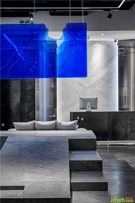 主要材料:拉絲不銹鋼、熟鐵、石材、裝置藝術(shù)、魔巖板、自流平、藝術(shù)漆