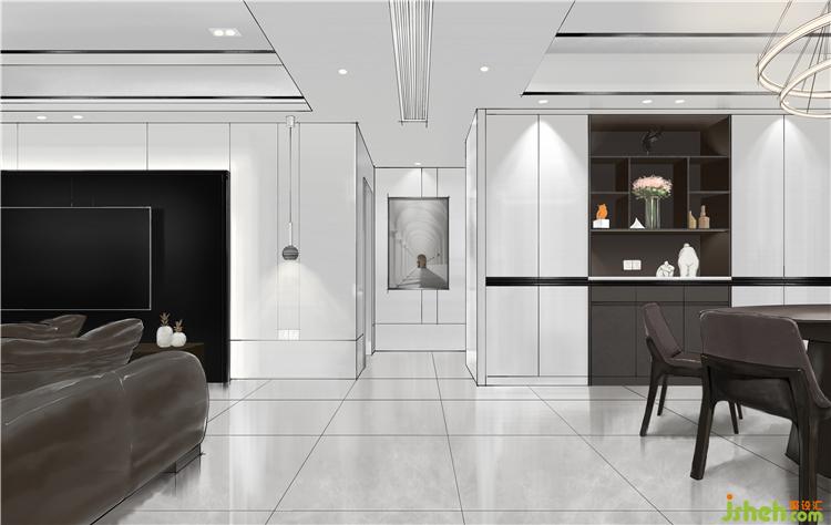 白色木飾面打底,再加黑色線條做造型,營造出大氣簡約的高級感