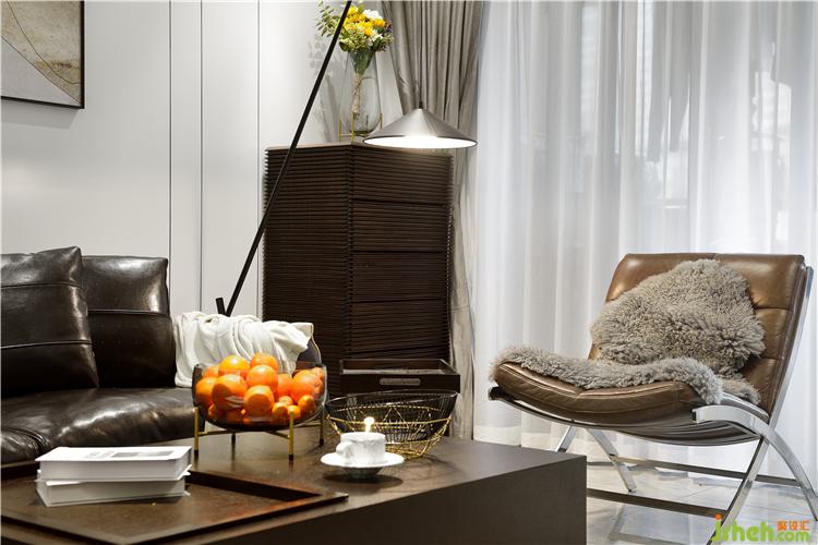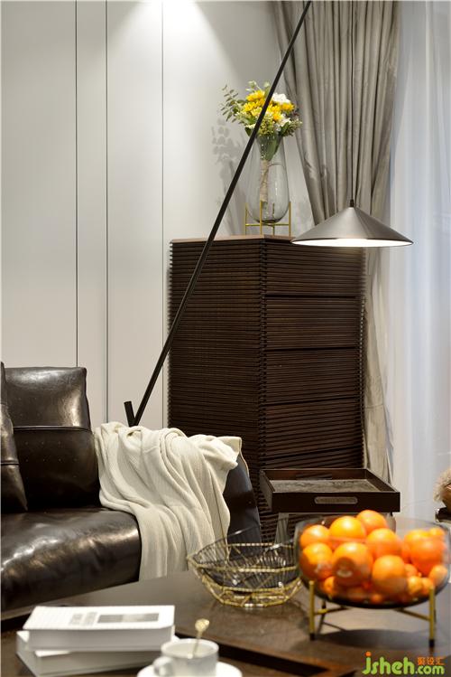 男業(yè)主經(jīng)常加班出差,所以在客廳擺了一把釣魚燈,等候晚歸的主人。光線可以調(diào)節(jié)。無論身處何方,家中總有一盞溫暖的燈等待你回來。室內(nèi)設(shè)計(jì)師