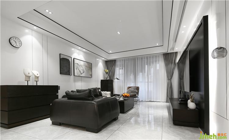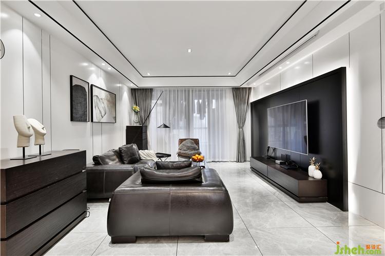 客廳沒有用主燈,用點(diǎn)光源代替,視野更加開闊,沒有壓抑感,空間層次感也會(huì)更好。