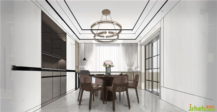 餐廳靠窗邊設(shè)計(jì)了一排吧臺(tái),這樣吃完飯可以坐在吧臺(tái)上喝喝咖啡欣賞外面的美景放松一下。