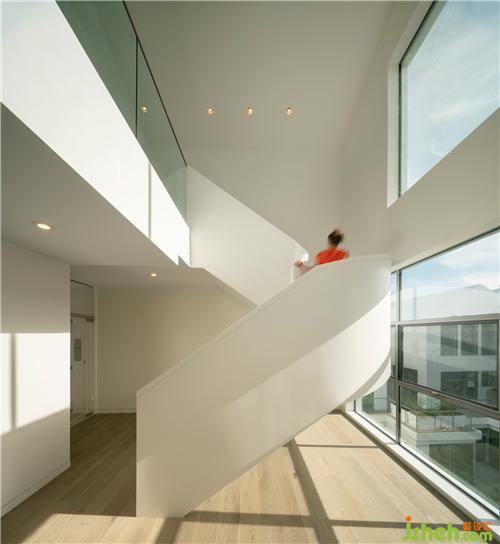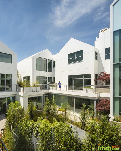 白房子圍合成二層庭院便是社區(qū)公共空間。每家都有面朝院子的觀景陽臺,在戶型排布時經(jīng)過特別考量,通過陽臺的角度、距離以及和庭院內(nèi)的綠植的關(guān)系,能夠讓住戶形成一種優(yōu)雅的互動,在保護(hù)隱私的同時,也感受鄰里守望的溫暖。